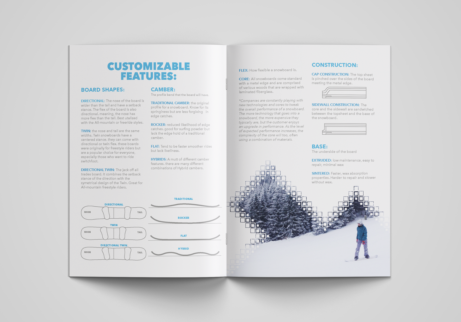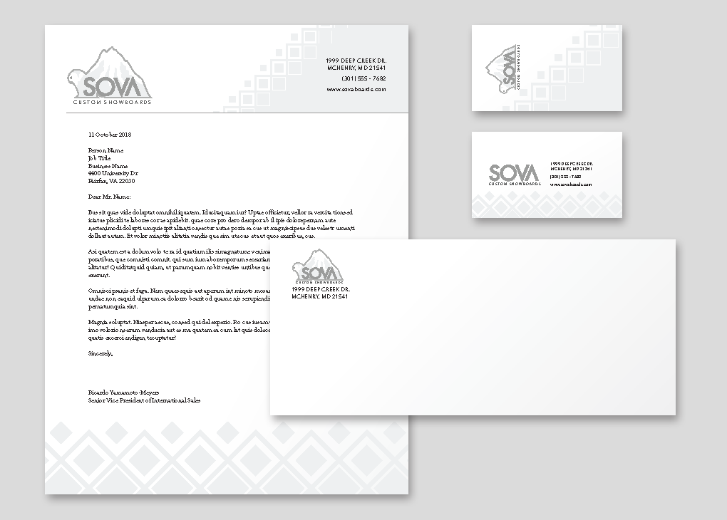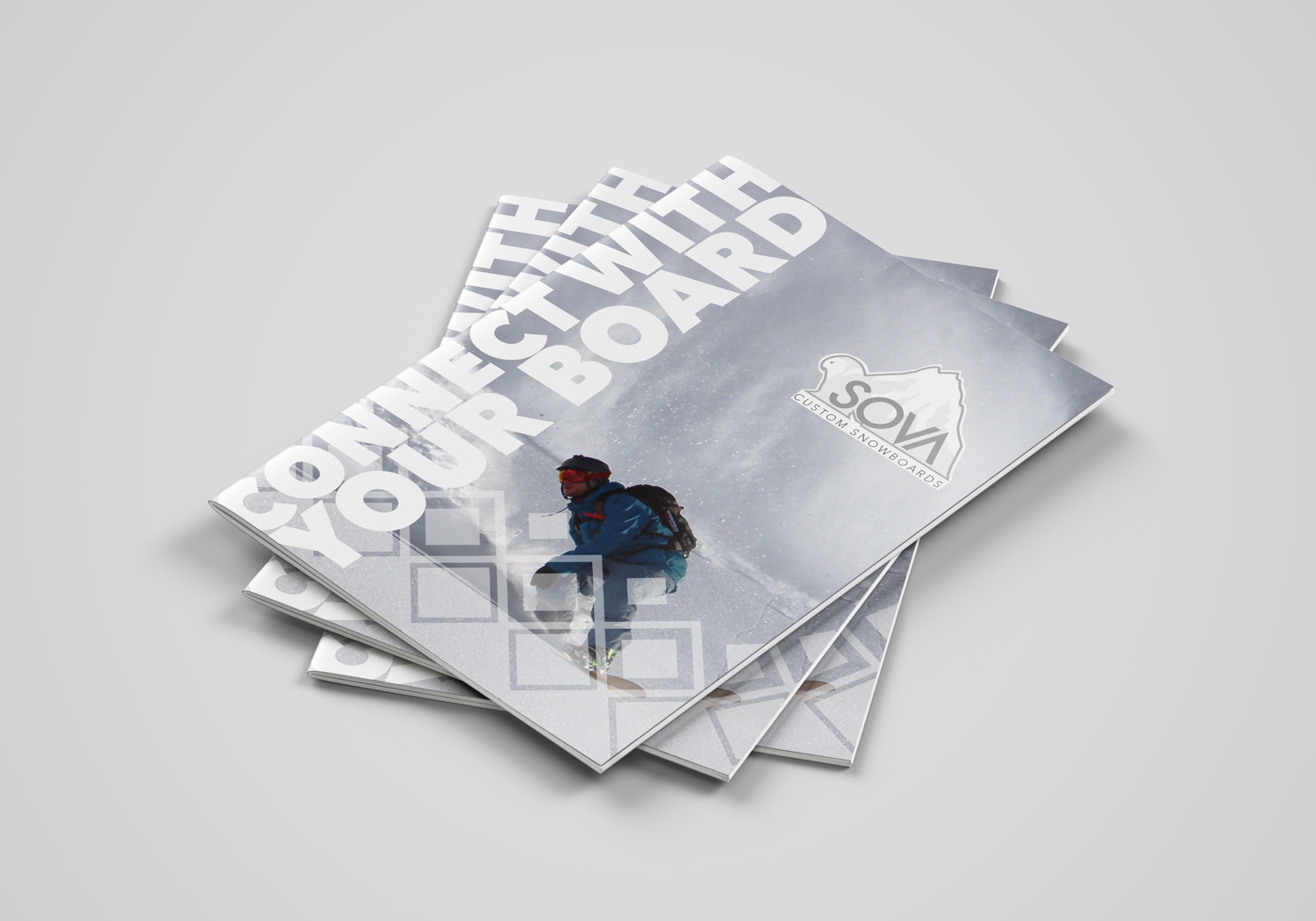 Sova is a theoretical snowboarding company. They specialize in the manufacturing of custom snowboards based off of the customer’s specifications. I was given the name Sova and created, designed, and branded the company.